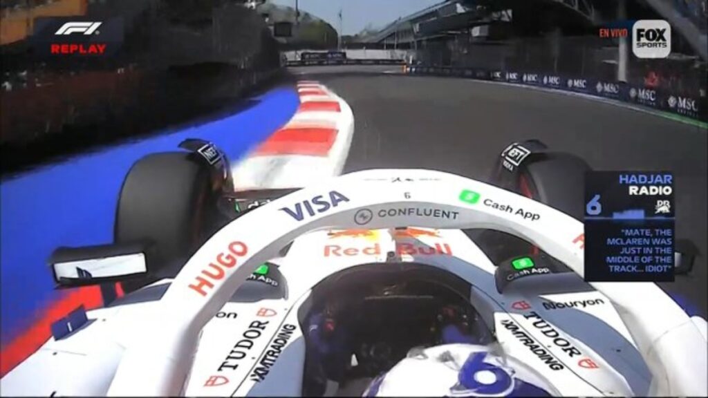 El primero de estos momentos se dio precisamente entre el piloto de Racing Bulls y Norris, pues a pocos minutos del final de la sesión Isack se encontraba en un intento de mejorar su tiempo vuelta cuando en la entrada al Estadio se encontró con el piloto británico que estaba en medio de la pista en una velocidad reducida, por lo que Hadjar tuvo que hacer una maniobra arriesgada que perjudicó su tiempo. El incidente causó molestia en la escudería de Faenza quienes nos dejaron una llamada de radio que quedará en la memoria de los aficionados.