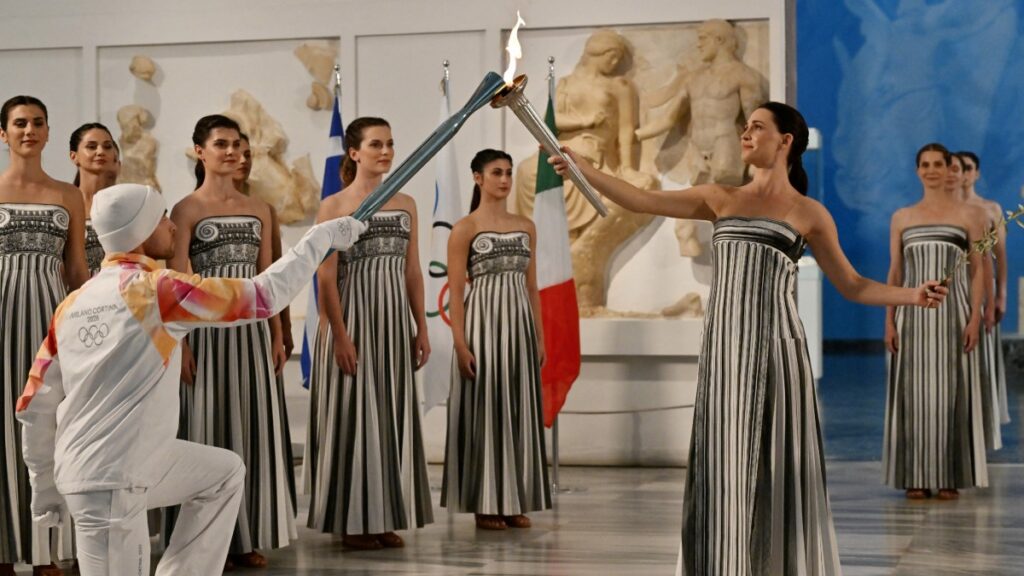 Una ceremonia ajustada por el clima encendió el fuego en Olimpia; el relevo recorrerá Grecia e Italia rumbo a los Juegos Olímpicos de Invierno