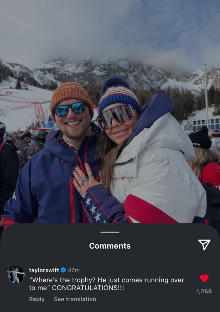 Taylor Swift felicita a Breezy Johnson tras comprometerse en Milano Cortina 2026
