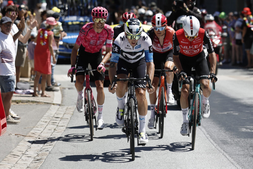 16 km | Ewen Costiou tomó la delantera en la cima de la colina en el pueblo de Mûr-de-Bretagne, que precede a la subida homónima. Geraint Thomas se quedó atrás en cabeza. Visma-Lease a Bike ahora lidera el pelotón. ¿Etapa para Jonas Vingegaard?
