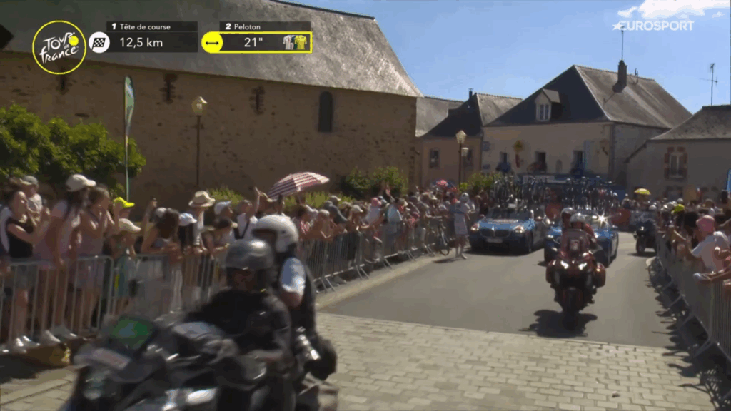 50 km | 31° de temperatura arropan a todos los participantes que quedan en lucha por el título del Tour de Francia. 47 segundos separan al pelotón principal de Mathieu Burgaudeau y Mattéo Vercher. Todos empiezan a palpitar la disputa del puerto de montaña de cuarta categoría en Côte de Nuillé-sur-Vicoin, 1 punto estará en juego.