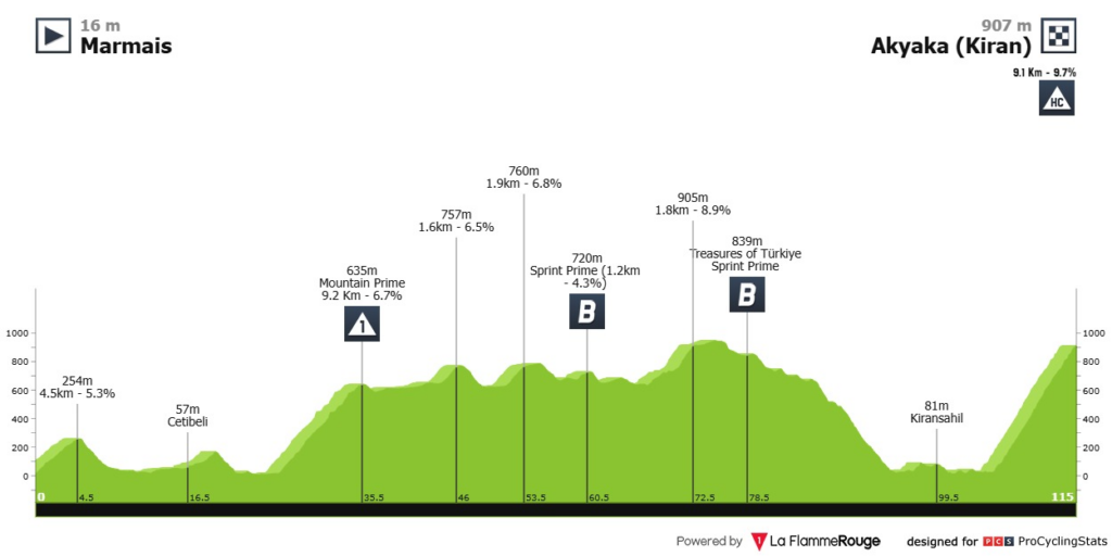 Este miércoles 30 de abril se estará disputando la etapa 4 del Tour de Turquía 2025. Serán 115.4 kilómetros de recorrido entre Marmaris y Akyaka (Kiran). El día será para los escaladores. En primera instancia será plana la fracción, después habrá un puerto de montaña de primera categoría y dos sprints bonificables más adelante. Habrá descenso y la meta será en otra subida identificado como un gran puerto de montaña.