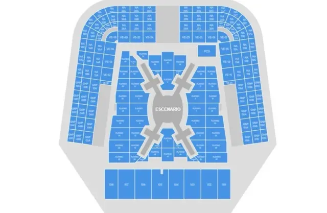 El mapa oficial del Estadio GNP Seguros confirma un escenario 360 ubicado al centro del recinto, lo que elimina la división tradicional entre zonas frontales y traseras. Este diseño permite que todas las secciones tengan visibilidad directa al espectáculo, aunque la experiencia varía según la cercanía al escenario.