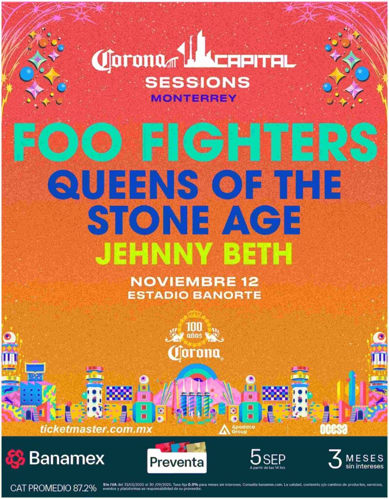 La tercera y última fecha será en Monterrey, el miércoles 12 de noviembre de 2025 en el Estadio Banorte, con inicio a las 16:00 horas. Para este concierto el cartel será distinto, con la participación de Foo Fighters, Queens of the Stone Age y Jehnny Beth. Este evento marca el cierre de las Corona Capital Sessions 2025 antes de dar paso al festival principal en la Ciudad de México.