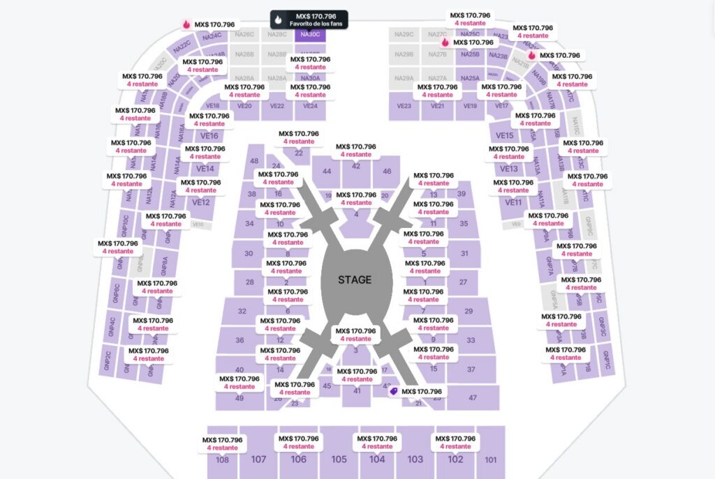 La alta demanda provocó que múltiples zonas se agotaran en cuestión de minutos, especialmente las más cercanas al escenario 360. Con la preventa aún fresca, el fenómeno dio un giro previsible pero contundente: los boletos comenzaron a aparecer en reventa a precios muy por encima de su costo original.