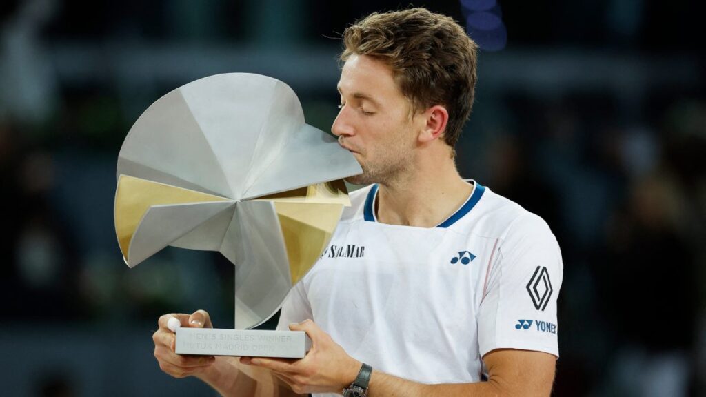 Casper Ruud se coronó en el Masters 1000 de Madrid. Tras dos finales perdidas y seis semifinales, el noruego por fin conquistó su primer título de la categoría. Con parciales de 7-5, 3-6 y 6-4, superó al quinto preclasificado y vigente campeón de Indian Wells, Jack Draper.