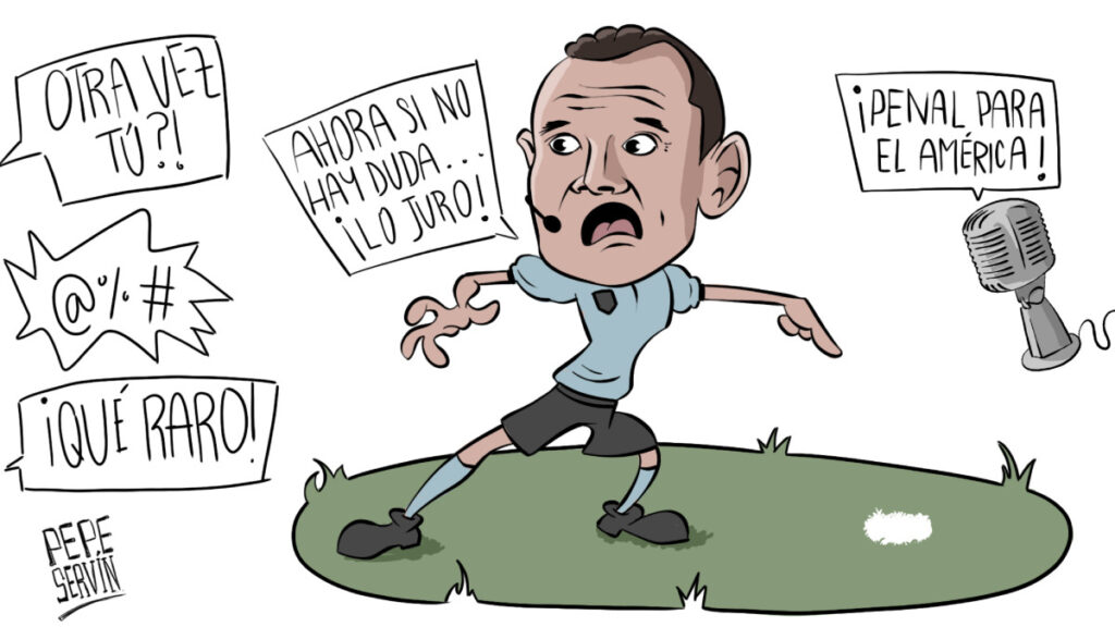 En su más reciente caricatura, Pepe Servín retrata con ironía el regreso del Gato Ortiz al silbato en un partido del América, luego de 14 meses sin arbitrar a las Águilas. El silbante fue designado para la jornada 2 del Apertura 2025 ante Xolos y volvió a ser protagonista tras marcar un penalti polémico a favor del equipo de Coapa, decisión que no pasó por la revisión del VAR y que generó reacciones entre la afición.